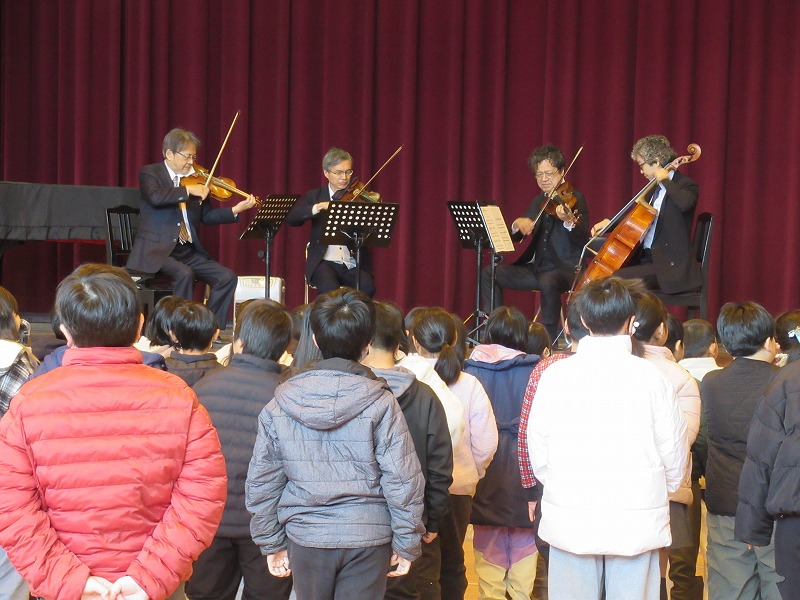 | 〇R7税金教室とN響トップメンバーによる「夢いっぱい☆コンサート」 税金教室と「夢いっぱい☆コンサート」は、今年で5年目となりました。 訪問校数は、小中学校、幼稚園を含め延べ56回となりました。春日部税務署管内の小学校数は90校ですので、その6割を超える訪問となっています。 今年は小中学校1校と小学校5校、幼稚園1園の7か所に派遣しました。 税金についても笑いあり、驚きありで楽しく学び、その後N響の素晴らしい弦楽四重奏を楽しみました。 12月3日(水)久喜市立本町小学校 ![]() 12月4日(木)春日部市立粕壁小学校 ![]() 12月8日(月)春日部市立江戸川小中学校、久喜市立青毛小学校 ![]() ![]() 12月16日(火)杉戸町立西小学校、さいたま市立岩槻小学校 ![]() ![]() 12月17日(水)蓮田市くろはま幼稚園(保護者を交えて実施) ![]() |