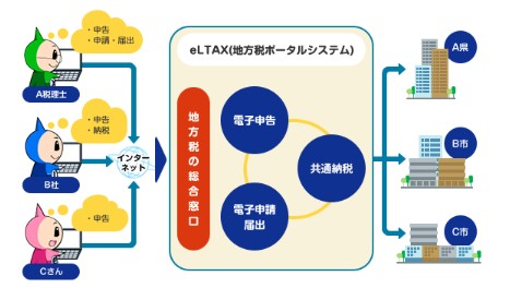 | 〇「eLTAX(エルタックス)」で申告・納税!申請・届出も提出できます! 埼玉県では、地方税共同機構の運営する地方税ポータルシステム (通称「eLTAX(エルタックス)」)を利用した、インターネットによる 法人県民税・法人事業税・特別法人事業税(地方法人特別税) ・県民税利子割・県民税配当割・県民税株式等譲渡所得割 ・ゴルフ場利用税・県たばこ税・軽油引取税の申告・納税受付を 行っています。利用開始方法など、詳細については eLTAXホームページをご覧ください。 また、県税に関する申請・届出の一部については、eLTAXにより 電子的に提出することができるものもあります。 eLTAXホームページ(https://www.eltax.lta.go.jp/)でご確認ください。 是非、eLTAXをご利用ください。 【お問合せ先】 eLTAX(エルタックス)ヘルプデスク(電話0570-081459(ハイシンコク)) ※上記の電話番号でつながらない場合(電話03-6745-0720) 各県税事務所又は県税務課(TEL048-830-2657 FAX048-830-4737) |