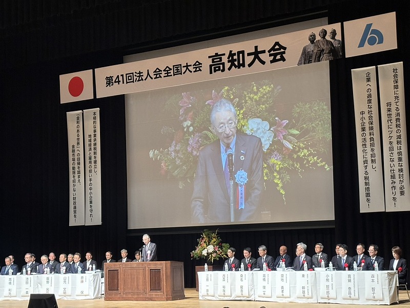 | お知らせ | 〇第41回 法人会全国大会 高知大会を開催 ~全国から1,600名の企業経営者が集結~ 令和7年10月16日(木)高知県立県民文化ホール 10月16日木曜日、関東はやっと涼しくなりましたが、高知土佐は まだまだ残暑の中、高知龍馬空港に到着しました。 高知市の県民文化ホールにおいて江島一彦国税庁長官や 西森裕哉高知県副知事など多くの来賓を招いて全法連 全国大会を開催しました。 春日部法人会では山田一徳会長、染谷重明副会長 冨田英則副会長、井上堅一副会長、田口義明税制・ 研修委員の5名が参加しました。 全国大会は、法人会の「税制改正に関する提言」の 内容を発表する場であるとともに、全国各地の法人会の 代表が一堂に会し、相互の交流と研鑽を通じ、 より一層連携を深めることを目的に年1回開催しています。 全国から集まった1,600名の企業経営者へ、ウェルカム イベントとして、よさこい鳴子踊りが行われ 第一部の式典が始まりました。 令和8年度税制改正提言の報告や青年部会による 租税教育活動の報告、健康経営活動の報告などが行われました。 その後、元ローソン・ジャパン社長、一般社団法人SDG’s ソーシャルデザイン協会名誉顧問の都築冨士男氏により 「変化の時代の経営、危機をチャンスに」という演題で 記念講演が行われました。 大会宣言は、概ね次のとおり。 昨年、日本銀行はマイナス金利政策を解除し 「金利のある世界」に回帰したが、今後も金利上昇が 続けば、国債の利払い費の増加が財政を圧迫しかねない ことから、財政健全化は国家的課題であり、本格的な歳出・ 歳入の一体的改革を進めることが重要である。 食料やエネルギーなどの価格高騰を契機に消費者物価も上昇し デフレ期からインフレ期への転換期に突入するなど国民生活や 産業に大きな影響を与えている。中小企業の経営環境は深刻化 する人手不足や継続的な賃上げ等により厳しさが増し、 さらに米国トランプ関税の影響は今後、本格化する恐れがあり 経済の先行きを不透明にしている。 地域経済や雇用の担い手であり、日本経済の礎である中小企業の 活性化を促進するために「中小企業の活性化に資する税制措置」 「事業承継税制の拡充」等を中心とする「税制改正に関する提言」の 実現を強く求めるものである。 創設以来、納税意識の向上に努めてきた法人会は、 全国の会員企業の総意として、以上宣言する。 令和7年10月16日 全国法人会総連合 全国大会 ![]() ![]() |